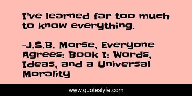 "J.S.B. Morse, Everyone Agrees: Book I: Words, Ideas, and a Universal Morality Quotes." Quoteslyfe.com, 2025. Fri. 05 Dec. 2025. <https://www.quoteslyfe.com/quote/I-ve-learned-far-too-much-to-98876>.