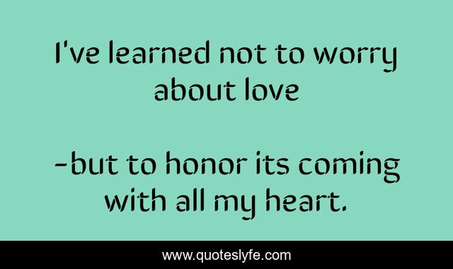 "but to honor its coming with all my heart. Quotes." Quoteslyfe.com, 2025. Sat. 06 Dec. 2025. <https://www.quoteslyfe.com/quote/I-ve-learned-not-to-worry-about-77097>.