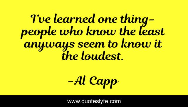 This page presents the quote "I’ve learned one thing-people who know the least anyways seem to know it the loudest.". Author of this quote is Al Capp. .
