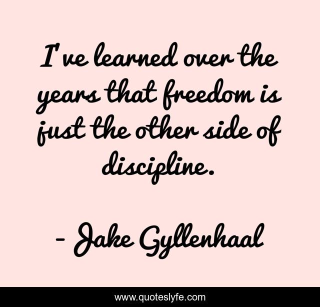 This page presents the quote "I've learned over the years that freedom is just the other side of discipline.". Author of this quote is Jake Gyllenhaal. This quote is about discipline, just, years,.
