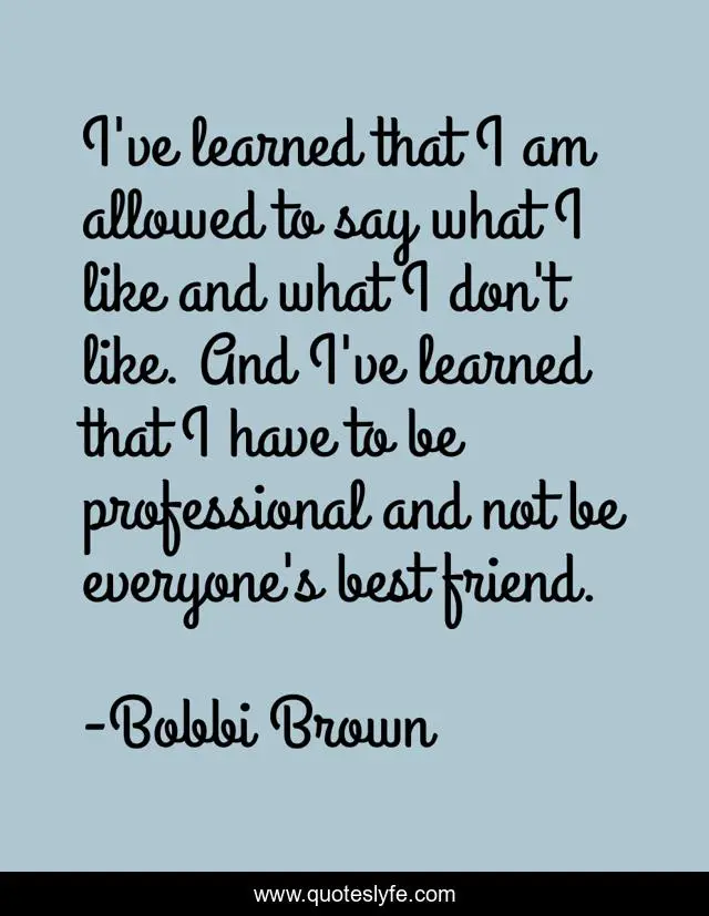 This page presents the quote "I've learned that I am allowed to say what I like and what I don't like. And I've learned that I have to be professional and not be everyone's best friend.". Author of this quote is Bobbi Brown. This quote is about best friend, friend,.