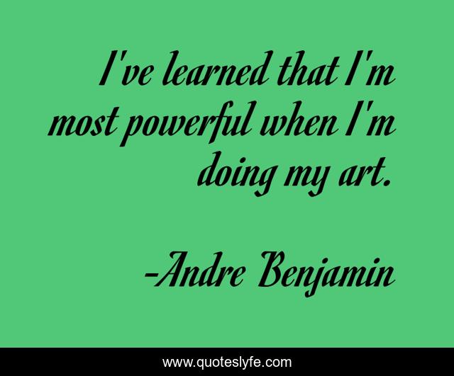 This page presents the quote "I've learned that I'm most powerful when I'm doing my art.". Author of this quote is Andre Benjamin. .