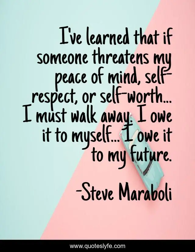 I've learned that if someone threatens my peace of mind, self-respect, or self-worth... I must walk away. I owe it to myself... I owe it to my future.