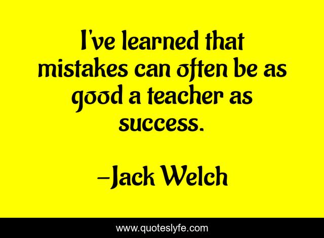 This page presents the quote "I've learned that mistakes can often be as good a teacher as success.". Author of this quote is Jack Welch. This quote is about good, mistakes, success,.