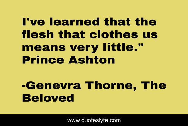 This page presents the quote "I've learned that the flesh that clothes us means very little." Prince Ashton". Author of this quote is Genevra Thorne, The Beloved. This quote is about magic, beauty, fantasy, quotes, faerie, fae,.