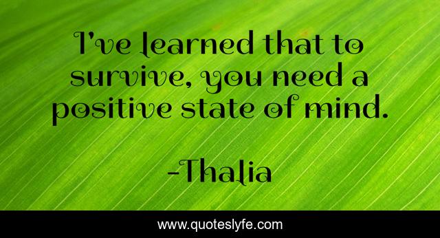 This page presents the quote "I've learned that to survive, you need a positive state of mind.". Author of this quote is Thalia. This quote is about survive, mind,.
