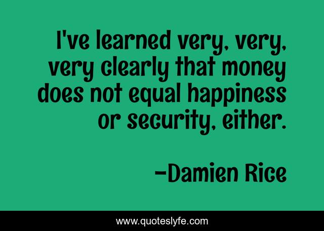 This page presents the quote "I've learned very, very, very clearly that money does not equal happiness or security, either.". Author of this quote is Damien Rice. This quote is about money, security, equal,.