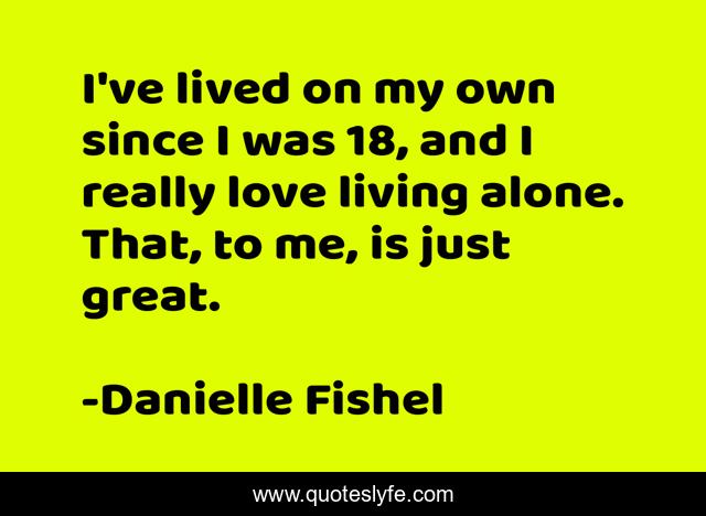 This page presents the quote "I've lived on my own since I was 18, and I really love living alone. That, to me, is just great.". Author of this quote is Danielle Fishel. This quote is about me, great, love, affection,.