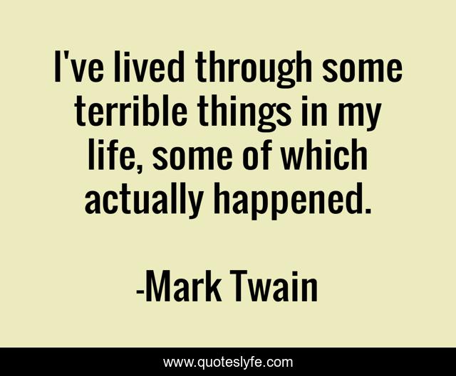 "Mark Twain Quotes." Quoteslyfe.com, 2025. Sat. 06 Dec. 2025. <https://www.quoteslyfe.com/quote/I-ve-lived-through-some-terrible-things-5460>.