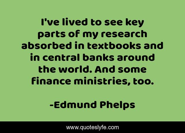 This page presents the quote "I've lived to see key parts of my research absorbed in textbooks and in central banks around the world. And some finance ministries, too.". Author of this quote is Edmund Phelps. This quote is about world, see, research,.