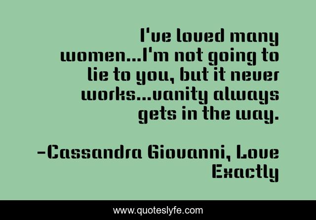 This page presents the quote "I've loved many women...I'm not going to lie to you, but it never works...vanity always gets in the way.". Author of this quote is Cassandra Giovanni, Love Exactly. This quote is about love, im-with-the-band, musician, romance, love-story, affection, vanity,.
