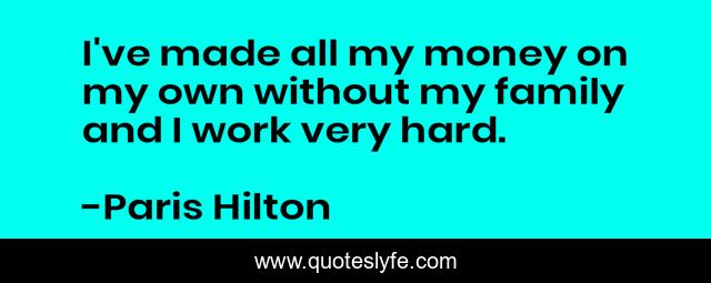 This page presents the quote "I've made all my money on my own without my family and I work very hard.". Author of this quote is Paris Hilton. This quote is about work, my own, family,.