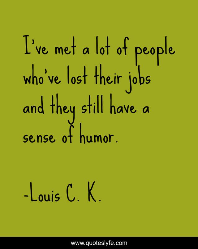 This page presents the quote "I've met a lot of people who've lost their jobs and they still have a sense of humor.". Author of this quote is Louis C. K.. This quote is about sense of humor, lost, people,.