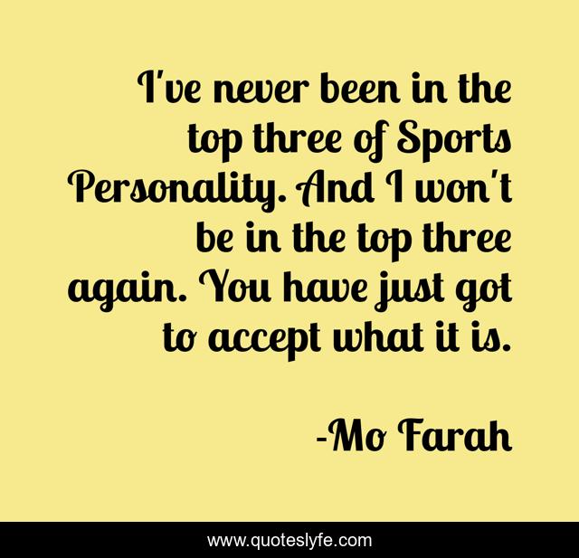 This page presents the quote "I've never been in the top three of Sports Personality. And I won't be in the top three again. You have just got to accept what it is.". Author of this quote is Mo Farah. This quote is about three, personality,.
