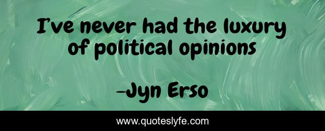 This page presents the quote "I’ve never had the luxury of political opinions". Author of this quote is Jyn Erso. This quote is about jyn-erso, opninions, luxury, star-wars, politics, privledge,.