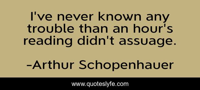 This page presents the quote "I've never known any trouble than an hour's reading didn't assuage.". Author of this quote is Arthur Schopenhauer. This quote is about enthusiasm, inspirational,.