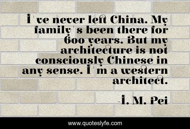 "I. M. Pei Quotes." Quoteslyfe.com, 2025. Tue. 09 Dec. 2025. <https://www.quoteslyfe.com/quote/I-ve-never-left-China-My-family-299641>.