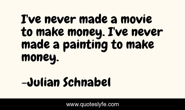 This page presents the quote "I've never made a movie to make money. I've never made a painting to make money.". Author of this quote is Julian Schnabel. This quote is about made, painting,.