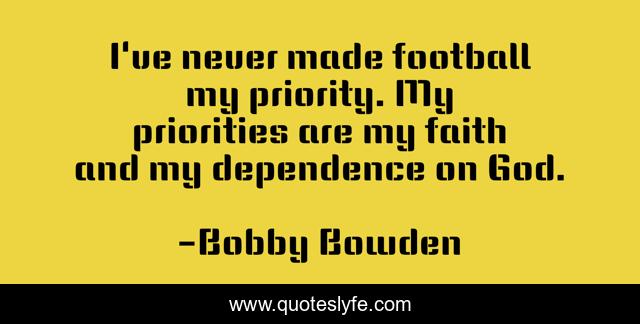 This page presents the quote "I've never made football my priority. My priorities are my faith and my dependence on God.". Author of this quote is Bobby Bowden. This quote is about god, football, priorities,.
