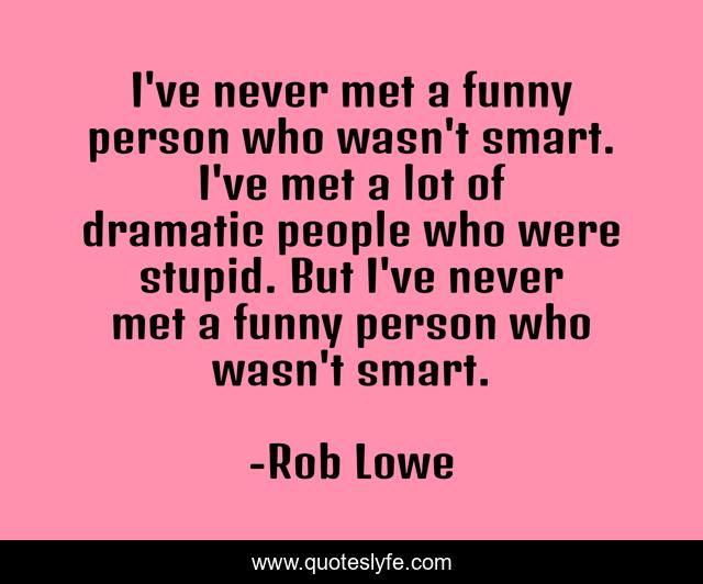 This page presents the quote "I've never met a funny person who wasn't smart. I've met a lot of dramatic people who were stupid. But I've never met a funny person who wasn't smart.". Author of this quote is Rob Lowe. This quote is about stupid, smart, people,.