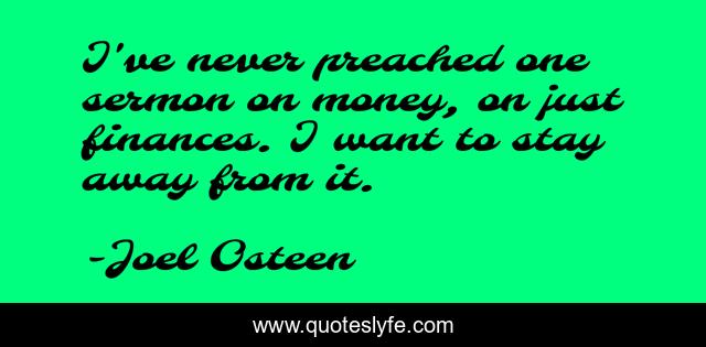 This page presents the quote "I've never preached one sermon on money, on just finances. I want to stay away from it.". Author of this quote is Joel Osteen. .