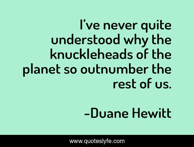 This page presents the quote "I’ve never quite understood why the knuckleheads of the planet so outnumber the rest of us.". Author of this quote is Duane Hewitt. This quote is about quote, comedy-humor,.
