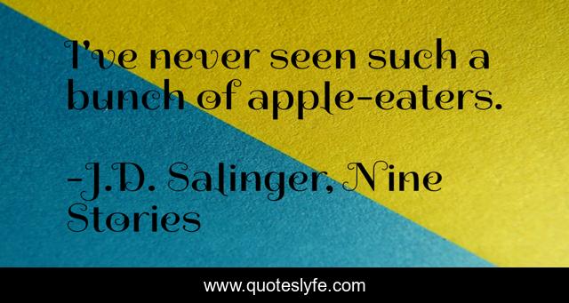This page presents the quote "I've never seen such a bunch of apple-eaters.". Author of this quote is J.D. Salinger, Nine Stories. This quote is about adam-and-eve, sin, apple, teddy,.