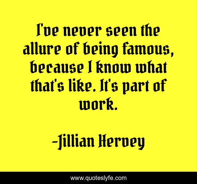 This page presents the quote "I've never seen the allure of being famous, because I know what that's like. It's part of work.". Author of this quote is Jillian Hervey. .