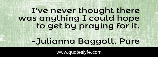 This page presents the quote "I've never thought there was anything I could hope to get by praying for it.". Author of this quote is Julianna Baggott, Pure. This quote is about religion, hope, prayer,.