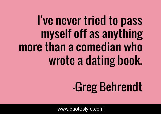 This page presents the quote "I've never tried to pass myself off as anything more than a comedian who wrote a dating book.". Author of this quote is Greg Behrendt. This quote is about myself, book, anything,.