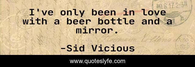 This page presents the quote "I've only been in love with a beer bottle and a mirror.". Author of this quote is Sid Vicious. This quote is about beer, bottle, mirror,.
