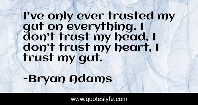 This page presents the quote "I've only ever trusted my gut on everything. I don't trust my head, I don't trust my heart, I trust my gut.". Author of this quote is Bryan Adams. This quote is about heart, trusted, gut,.