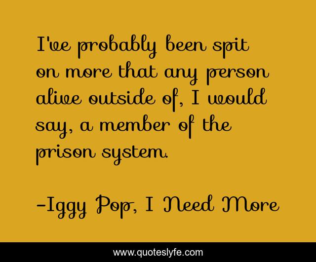 This page presents the quote "I've probably been spit on more that any person alive outside of, I would say, a member of the prison system.". Author of this quote is Iggy Pop, I Need More. This quote is about life, musician, music,.