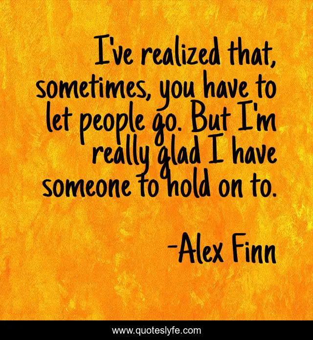 This page presents the quote "I've realized that, sometimes, you have to let people go. But I'm really glad I have someone to hold on to.". Author of this quote is Alex Finn. This quote is about letting-go, love, affection,.