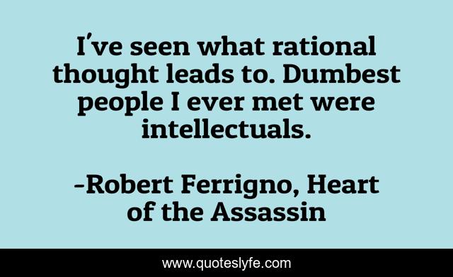 This page presents the quote "I've seen what rational thought leads to. Dumbest people I ever met were intellectuals.". Author of this quote is Robert Ferrigno, Heart of the Assassin. This quote is about thought, intellectual, rational,.