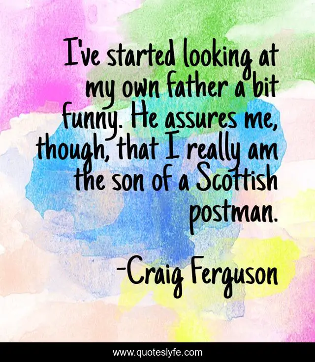 This page presents the quote "I've started looking at my own father a bit funny. He assures me, though, that I really am the son of a Scottish postman.". Author of this quote is Craig Ferguson. This quote is about me, father, son,.