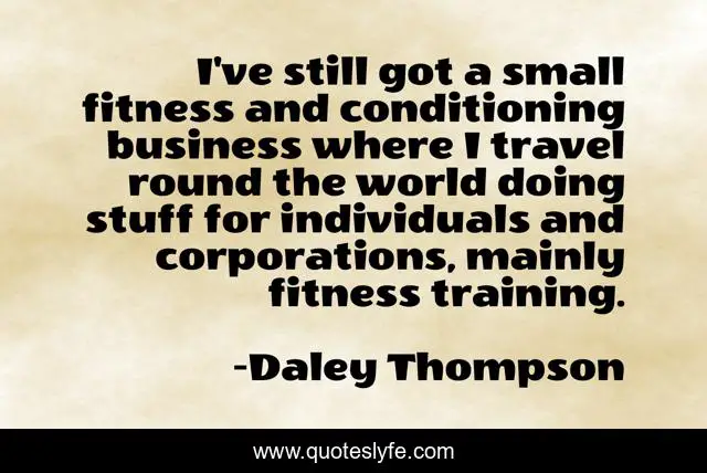 This page presents the quote "I've still got a small fitness and conditioning business where I travel round the world doing stuff for individuals and corporations, mainly fitness training.". Author of this quote is Daley Thompson. This quote is about travel, training, business,.