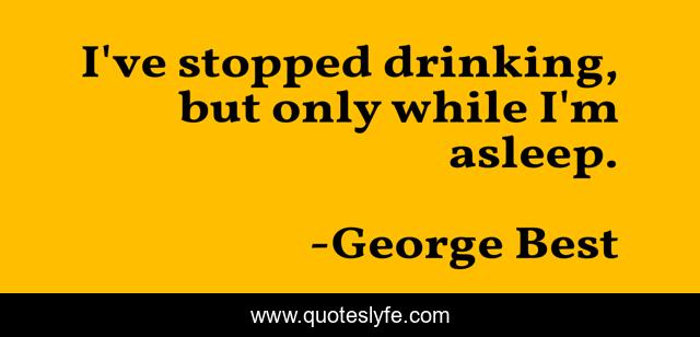 This page presents the quote "I've stopped drinking, but only while I'm asleep.". Author of this quote is George Best. This quote is about humor, alcohol, alcoholism,.
