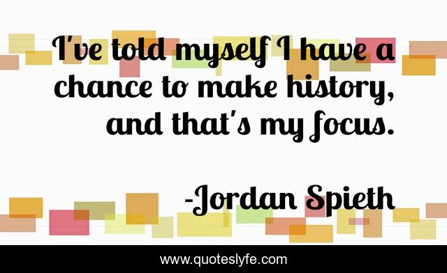 This page presents the quote "I've told myself I have a chance to make history, and that's my focus.". Author of this quote is Jordan Spieth. This quote is about myself, focus, history,.