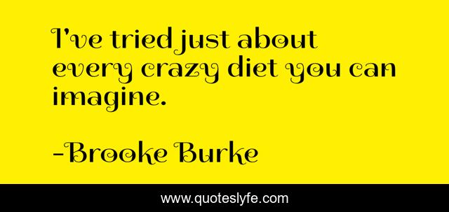 This page presents the quote "I've tried just about every crazy diet you can imagine.". Author of this quote is Brooke Burke. This quote is about crazy, imagine,.