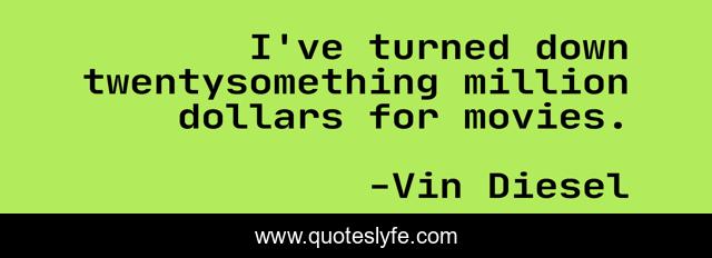 "Vin Diesel Quotes." Quoteslyfe.com, 2025. Sat. 06 Dec. 2025. <https://www.quoteslyfe.com/quote/I-ve-turned-down-twentysomething-million-dollars-313432>.