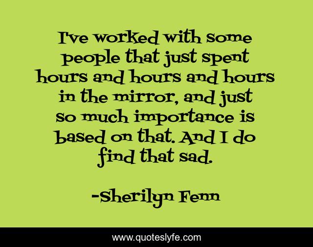 This page presents the quote "I've worked with some people that just spent hours and hours and hours in the mirror, and just so much importance is based on that. And I do find that sad.". Author of this quote is Sherilyn Fenn. This quote is about mirror, find, people,.