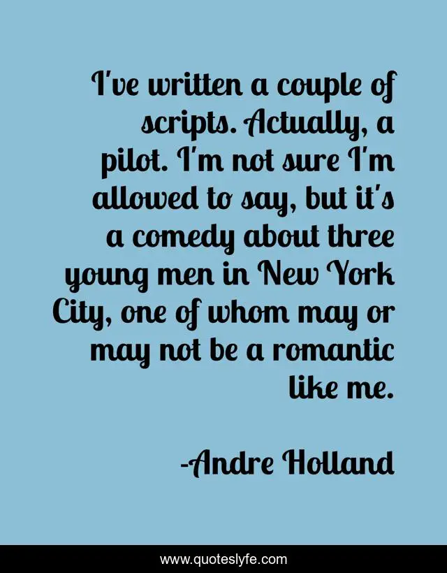 This page presents the quote "I've written a couple of scripts. Actually, a pilot. I'm not sure I'm allowed to say, but it's a comedy about three young men in New York City, one of whom may or may not be a romantic like me.". Author of this quote is Andre Holland. This quote is about me, city, men,.