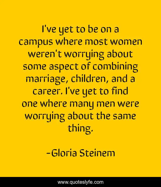 This page presents the quote "I've yet to be on a campus where most women weren't worrying about some aspect of combining marriage, children, and a career. I've yet to find one where many men were worrying about the same thing.". Author of this quote is Gloria Steinem. This quote is about men, marriage, children,.