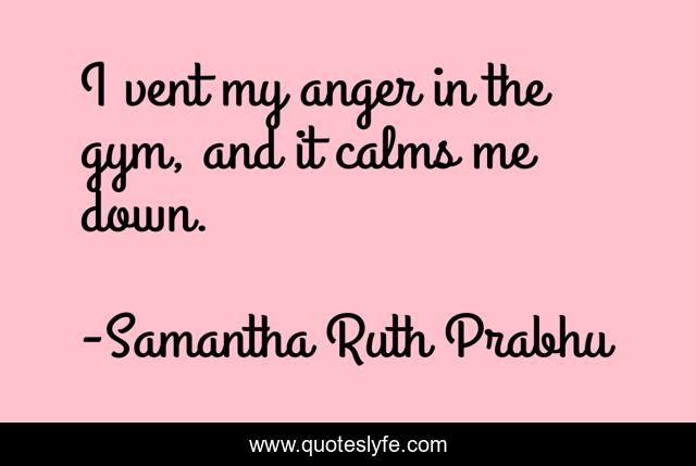 This page presents the quote "I vent my anger in the gym, and it calms me down.". Author of this quote is Samantha Ruth Prabhu. This quote is about me, down, gym,.