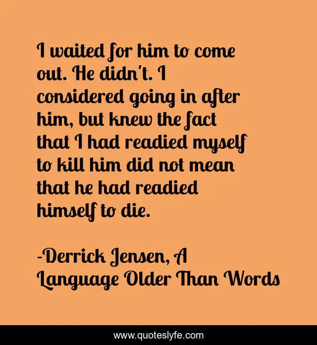 "Derrick Jensen, A Language Older Than Words Quotes." Quoteslyfe.com, 2025. Tue. 09 Dec. 2025. <https://www.quoteslyfe.com/quote/I-waited-for-him-to-come-out-207467>.