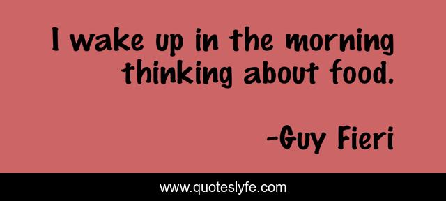 This page presents the quote "I wake up in the morning thinking about food.". Author of this quote is Guy Fieri. This quote is about food, thinking, wake up,.