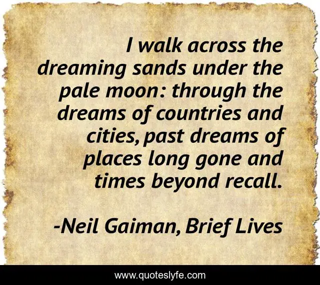 "Neil Gaiman, Brief Lives Quotes." Quoteslyfe.com, 2025. Fri. 05 Dec. 2025. <https://www.quoteslyfe.com/quote/I-walk-across-the-dreaming-sands-under-53294>.