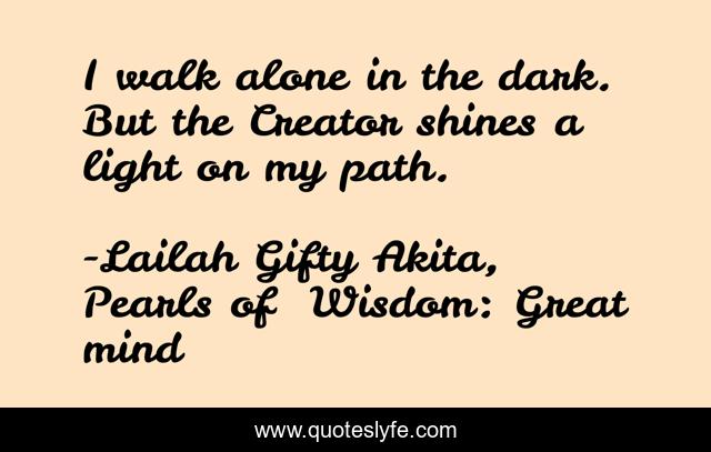 "Lailah Gifty Akita, Pearls of Wisdom: Great mind Quotes." Quoteslyfe.com, 2025. Fri. 05 Dec. 2025. <https://www.quoteslyfe.com/quote/I-walk-alone-in-the-dark-But-107205>.