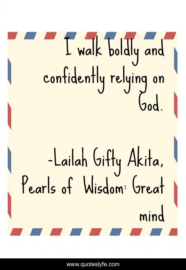 "Lailah Gifty Akita, Pearls of Wisdom: Great mind Quotes." Quoteslyfe.com, 2025. Fri. 05 Dec. 2025. <https://www.quoteslyfe.com/quote/I-walk-boldly-and-confidently-relying-on-84140>.